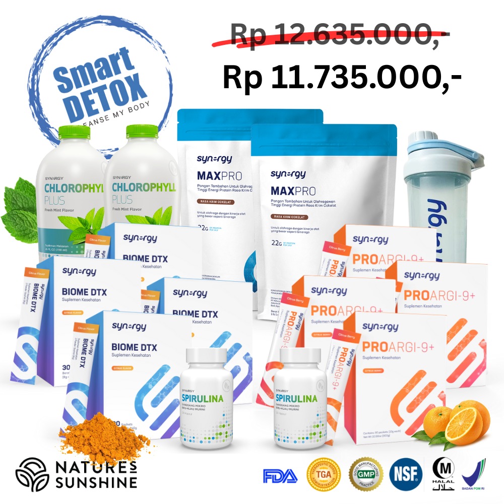 BioProargi by Smart Detox adalah paket produk suplemen kesehatan yang terdiri dari Proargi-9 Plus dan BiomeDTX dari Synergy Worldwide. Kedua produk ini diformulasikan untuk saling melengkapi dalam mendukung kesehatan tubuh secara menyeluruh.